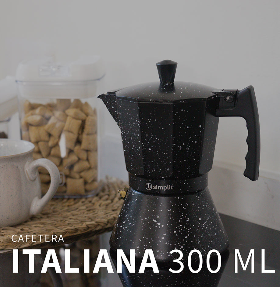 Nuestra Cafetera Italiana Simplit es perfecta para los amantes del café. En ella podrás lograr un café más intenso que lo que te entregan otras cafeteras. Su diseño negro de granito le dará el toque perfecto que le faltaba a tu cocina.