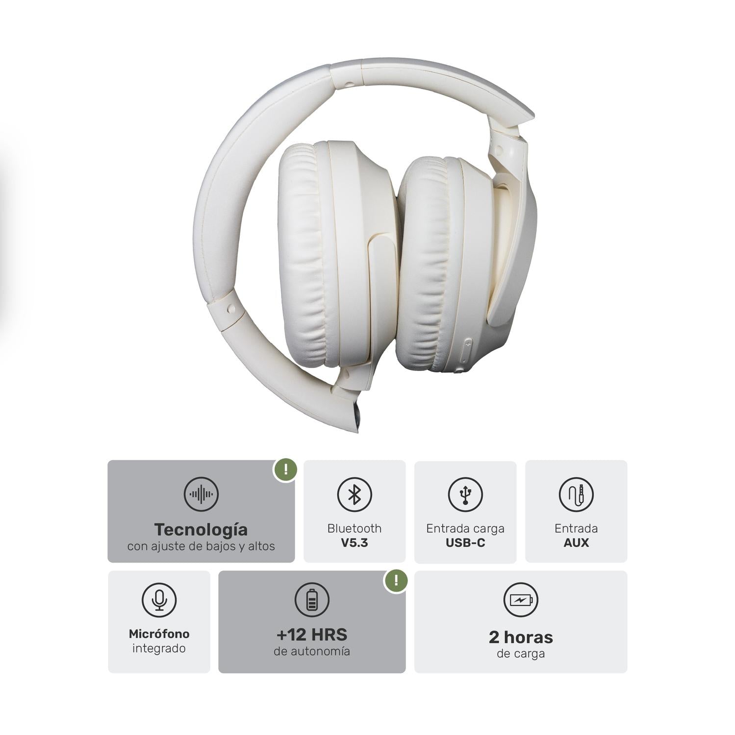 Audífonos Bluetooth Over Ear Cream WavePro – Sonido Sin Límites