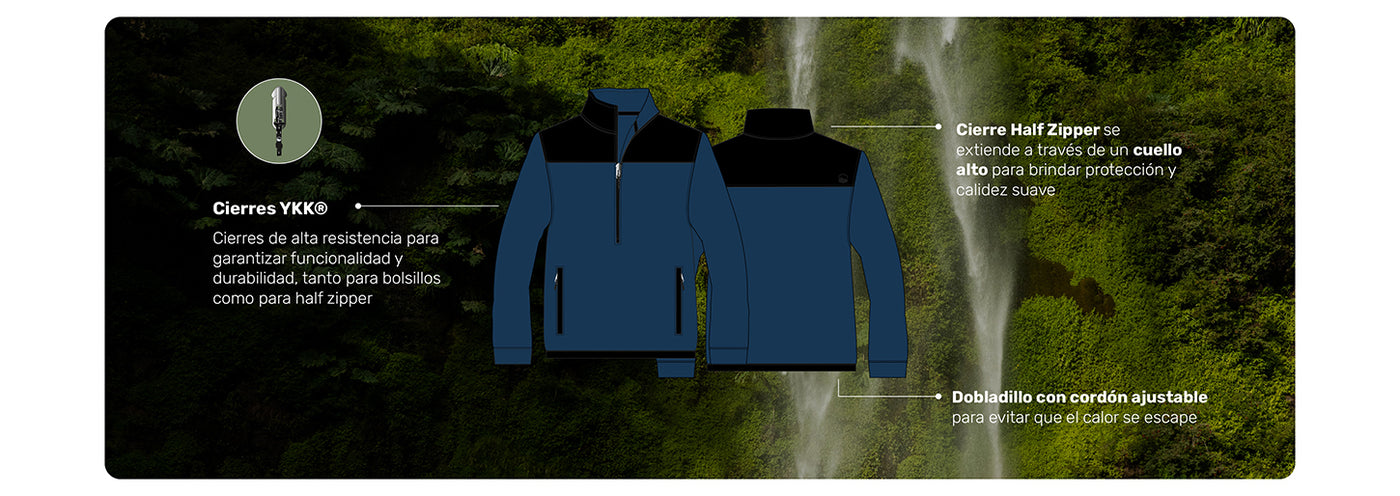 medio cierre es ligero, cálido y perfecto para capas intermedias en actividades
