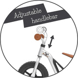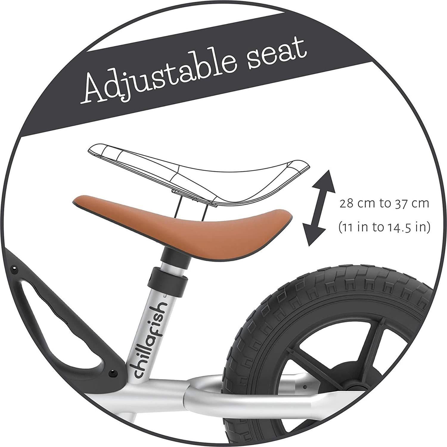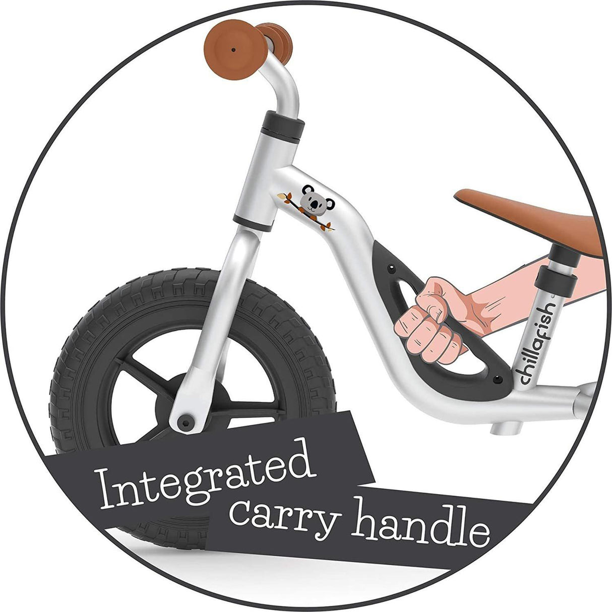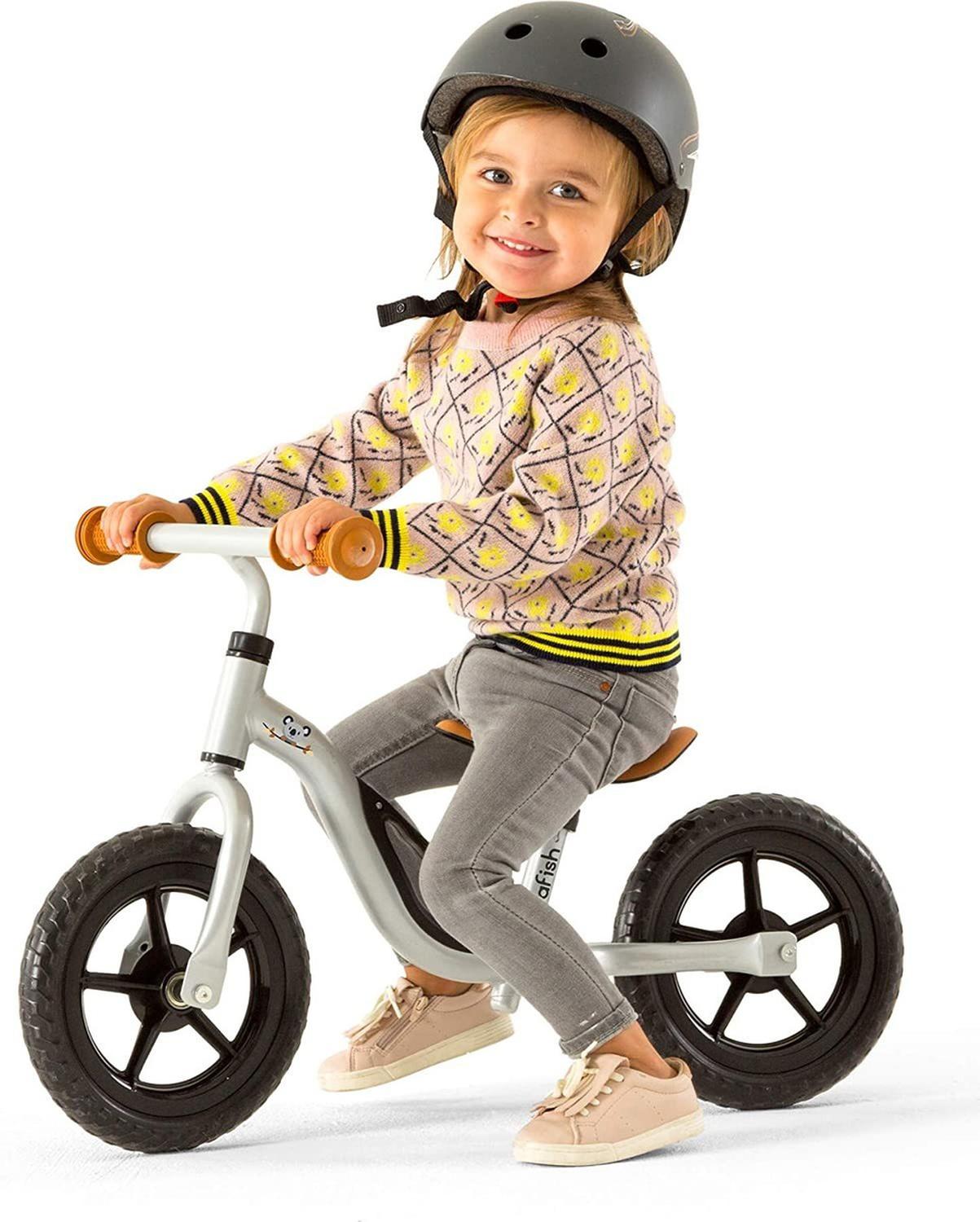 Charlie, bicicleta de equilibrio de 10 con asa de transporte integrada, extremadamente liviana. Diseño fresco super-duper con divertidas pegatinas :-) Asiento y altura del manillar ajustables; crece con su hijo. ¿Necesita algo más? ¿Qué tal un asiento de confort moldeado Chillafish personalizado?