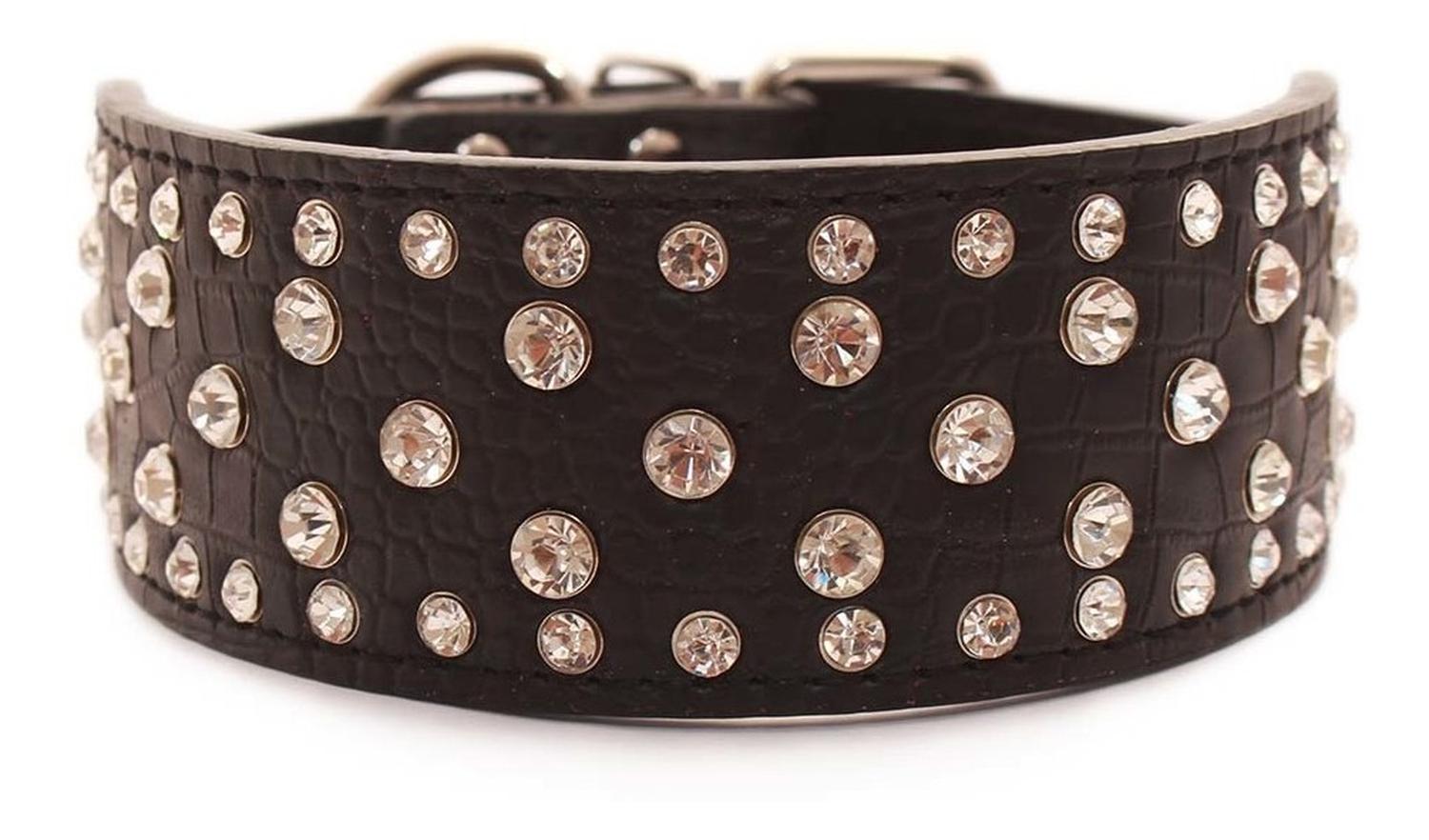Collar Perro Con Diamantes Eco Cuero 2Xl Negro Mascan