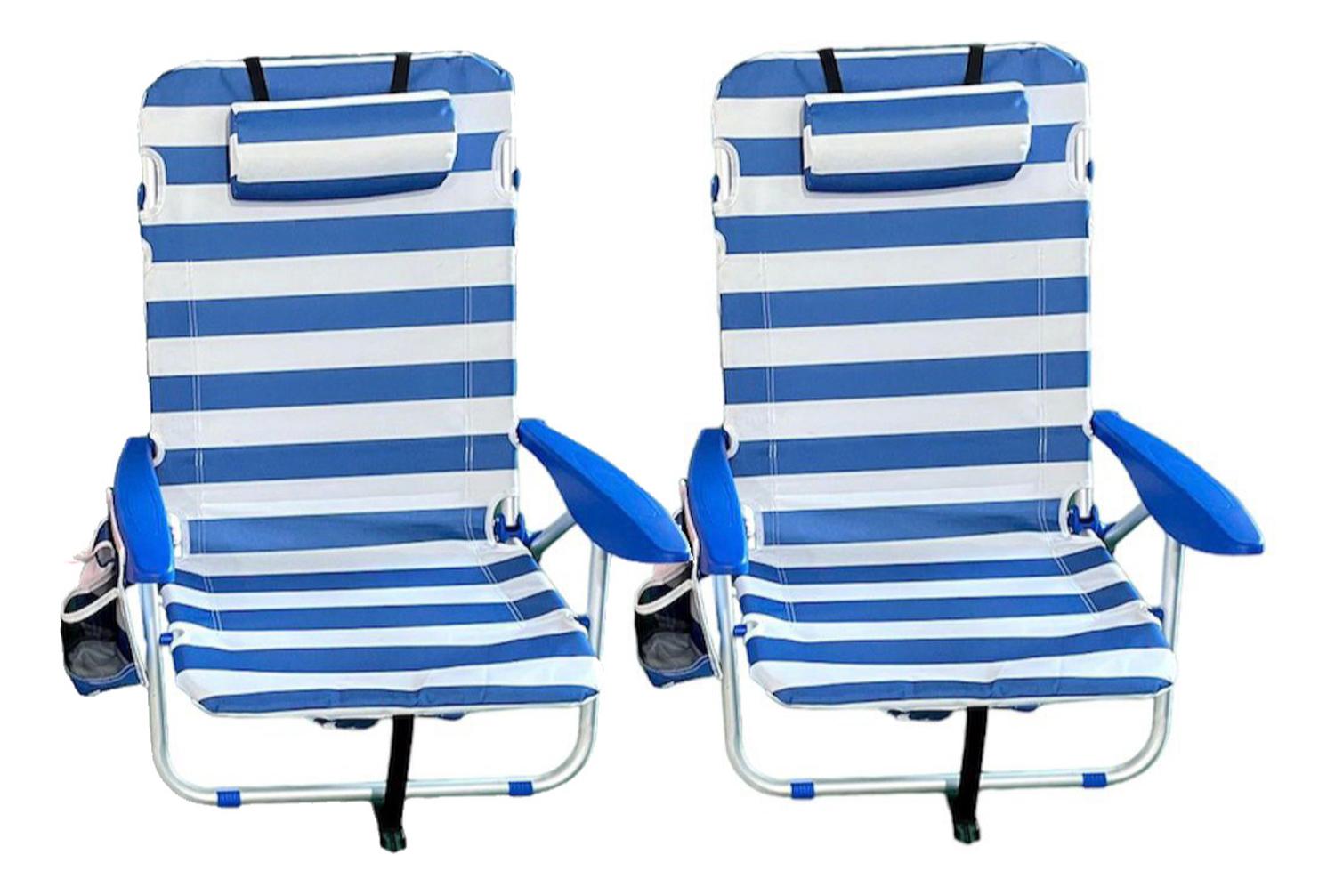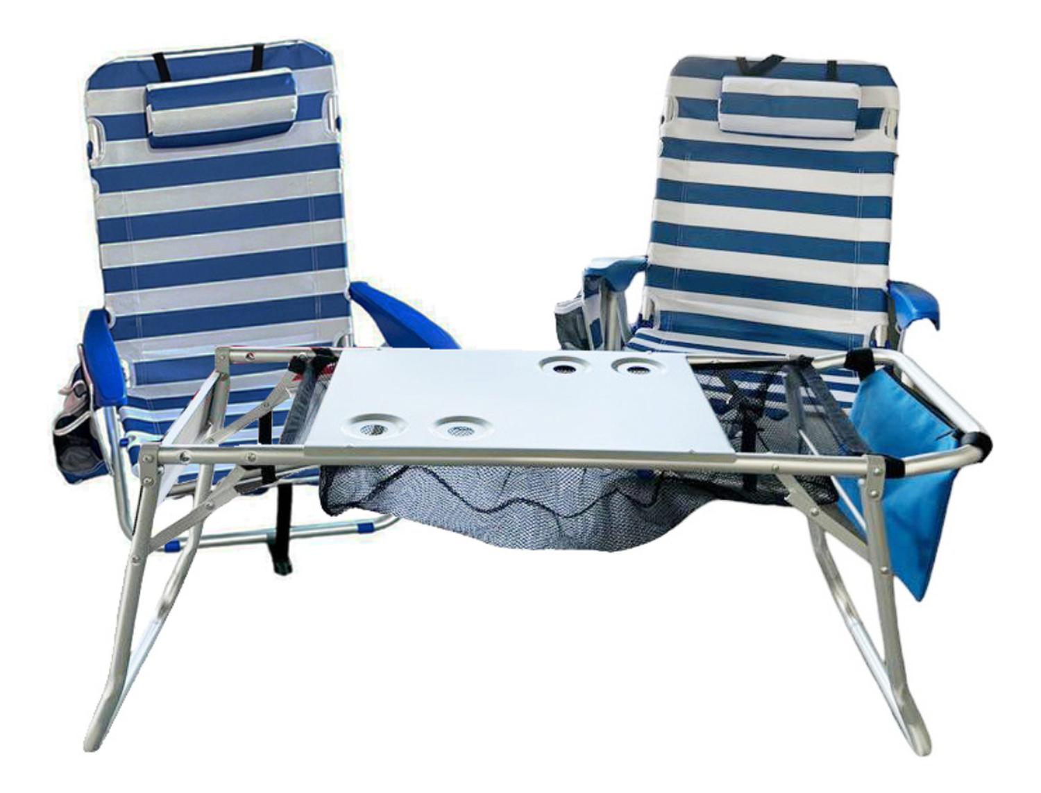 ¡Comodidad portátil! Set de reposeras reclinables rayadas en tono azul + Carro/Mesa transportador, diseñado para los amantes del aire libre y de la comodidad sin límites. Ya sea que te estés preparando para mirar el horizonte del mar, aventurando para ir a acampar, preparándote para mirar a los tuyos jugar en el lago, o simplemente quieres llevar la comodidad de tu living vayas donde vayas, nuestro set está hecho para ti.