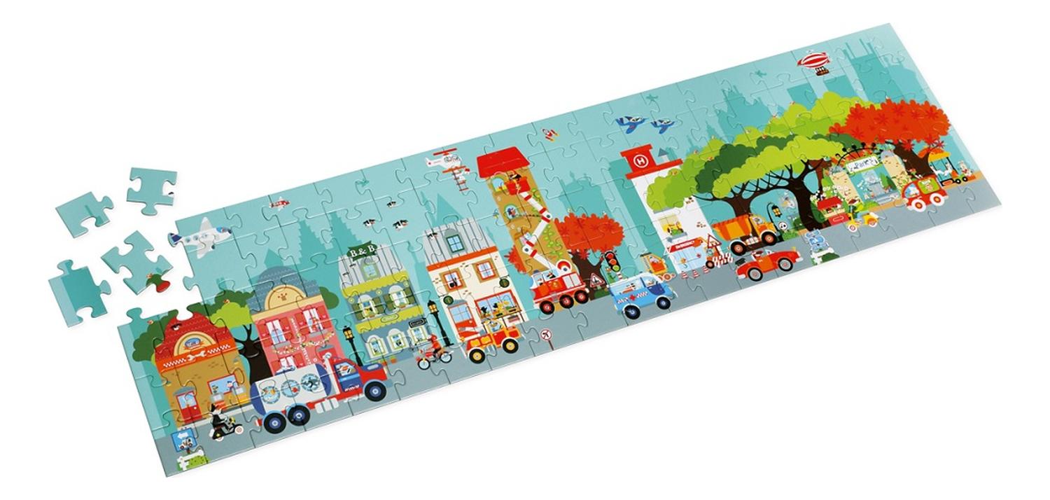 Puzzle de piso 100 piezas ideal para la motricidad fina y concentración. Tamaño Armado 120 x 32 cm. Hecho en cartón altamente resistente.