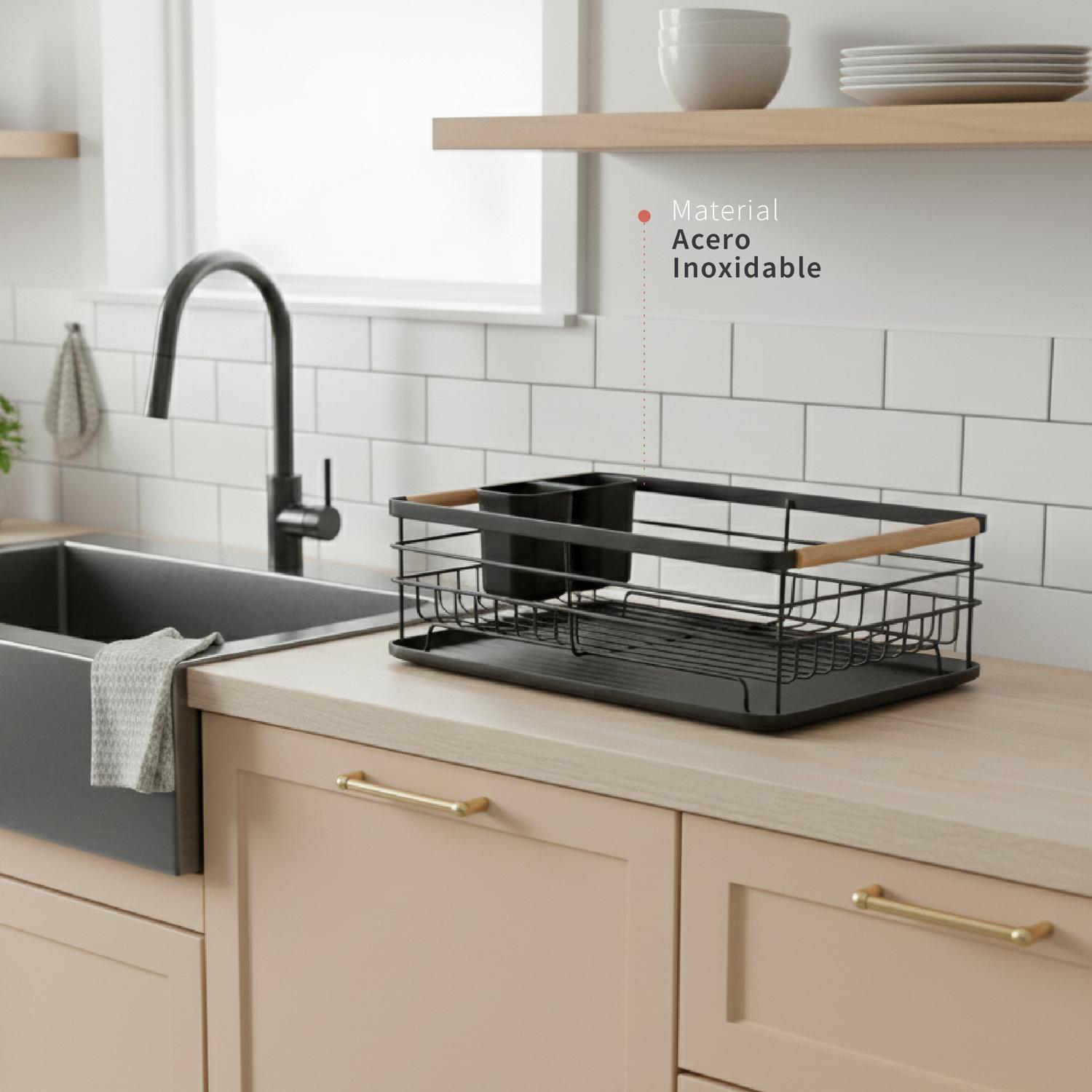 Secaplatos Escurridor 1 Nivel Acero Inox Negro Simplit