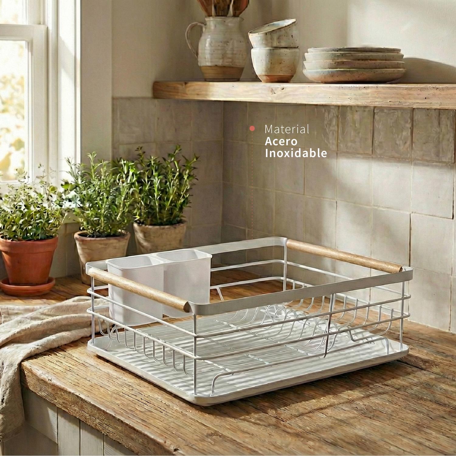 Secaplatos Escurridor 1 Nivel Acero Inox Blanco Simplit