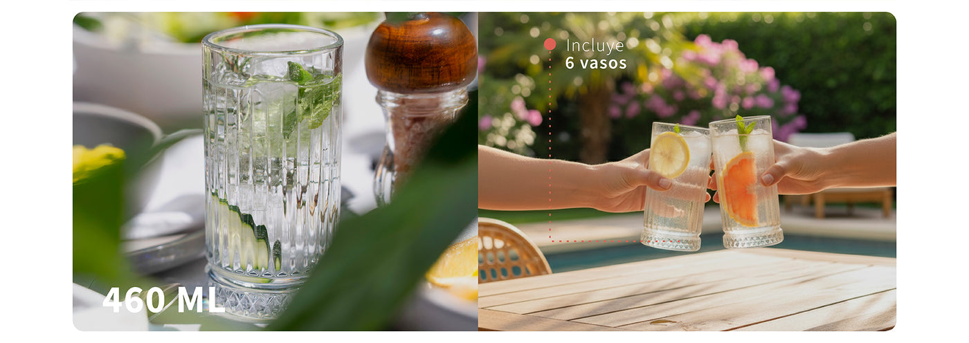 • Uso: Perfecto para tragos largos, Gin Tonic, mojitos, agua, y bebidas refrescantes.