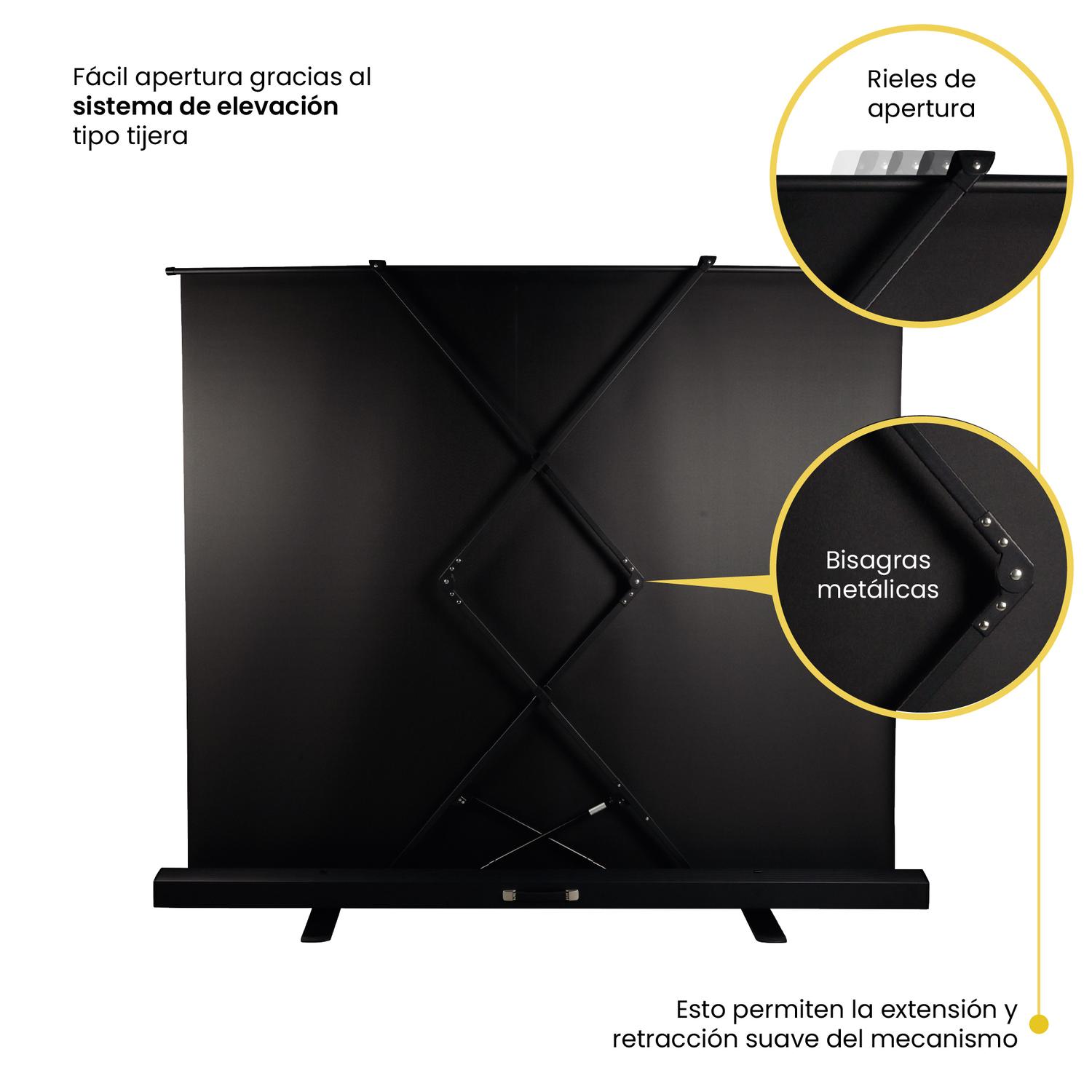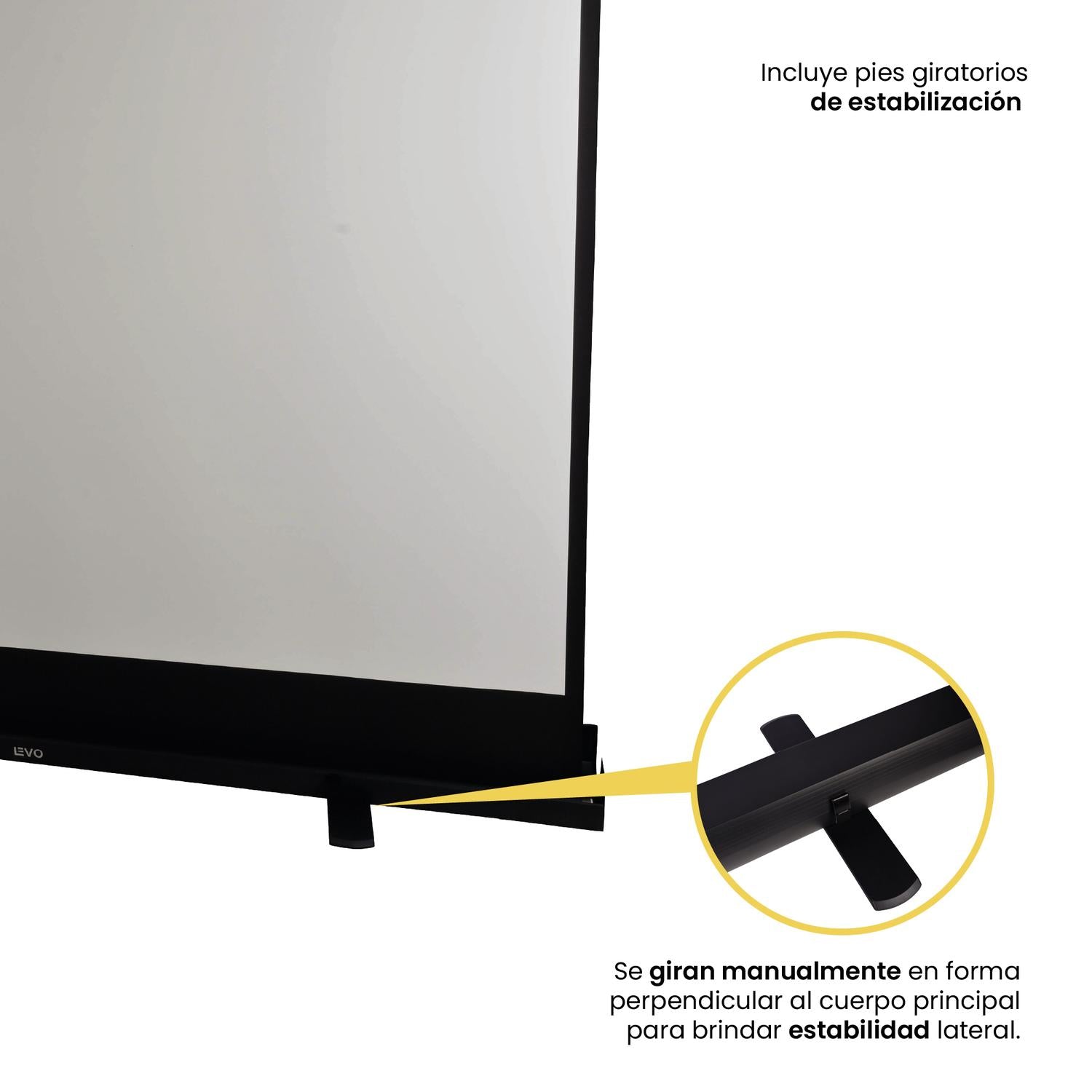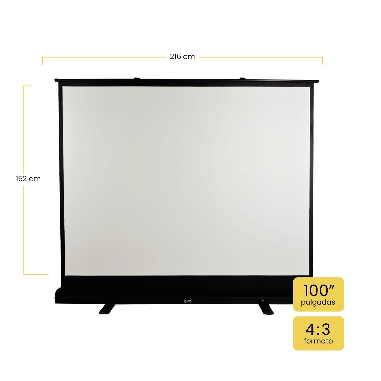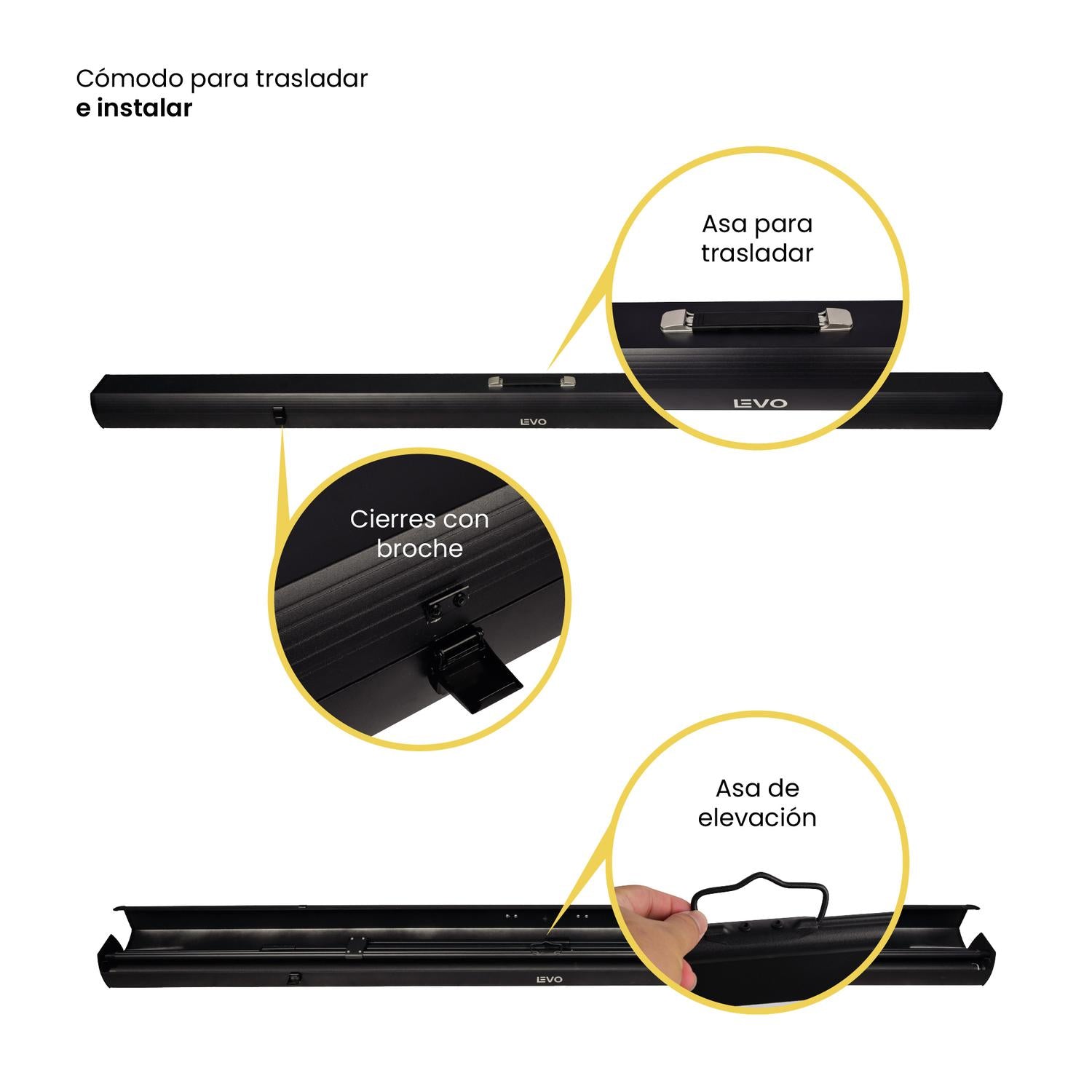 Convierte cualquier espacio en una sala de cine con el Telón retráctil LEVO de 100 pulgadas. Diseñado para máxima portabilidad y funcionalidad, este telón se despliega desde el suelo mediante un sistema de elevación manual tipo tijera, sin necesidad de instalaciones ni herramientas.